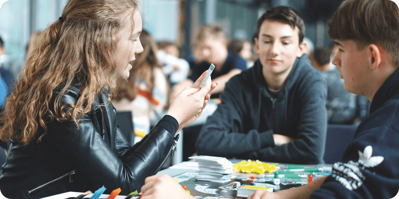 SCHOOLGAMES kombiniert bekannte Spielprinzipien wie Monopoly® oder Trivial Pursuit® mit fächerübergreifendem Lernen: Statt Straßen zu kaufen, gründen Schüler:innen fiktive Unternehmen, beantworten Fragen aus dem Unterricht und treffen Entscheidungen, die den Spielverlauf beeinflussen. Die Fragen stammen direkt aus der Lebens- und Arbeitswelt – ob Wirtschaft, Technik, Naturwissenschaften oder Sprache. Egal ob im Fach Wirtschaft oder in den MINT-Fächern – SCHOOLGAMES lässt sich flexibel im Unterricht einsetzen und bietet mit jeder Spielrunde neue Perspektiven auf bekannte Inhalte.